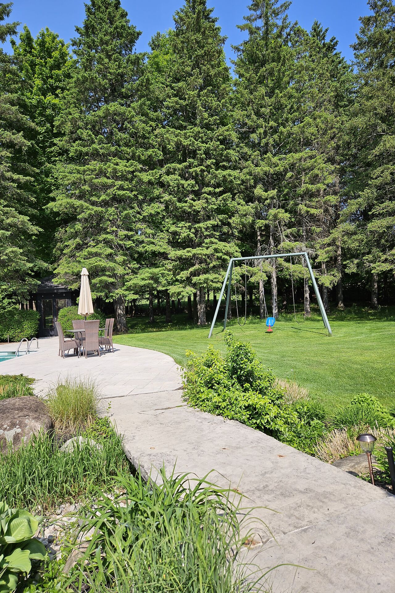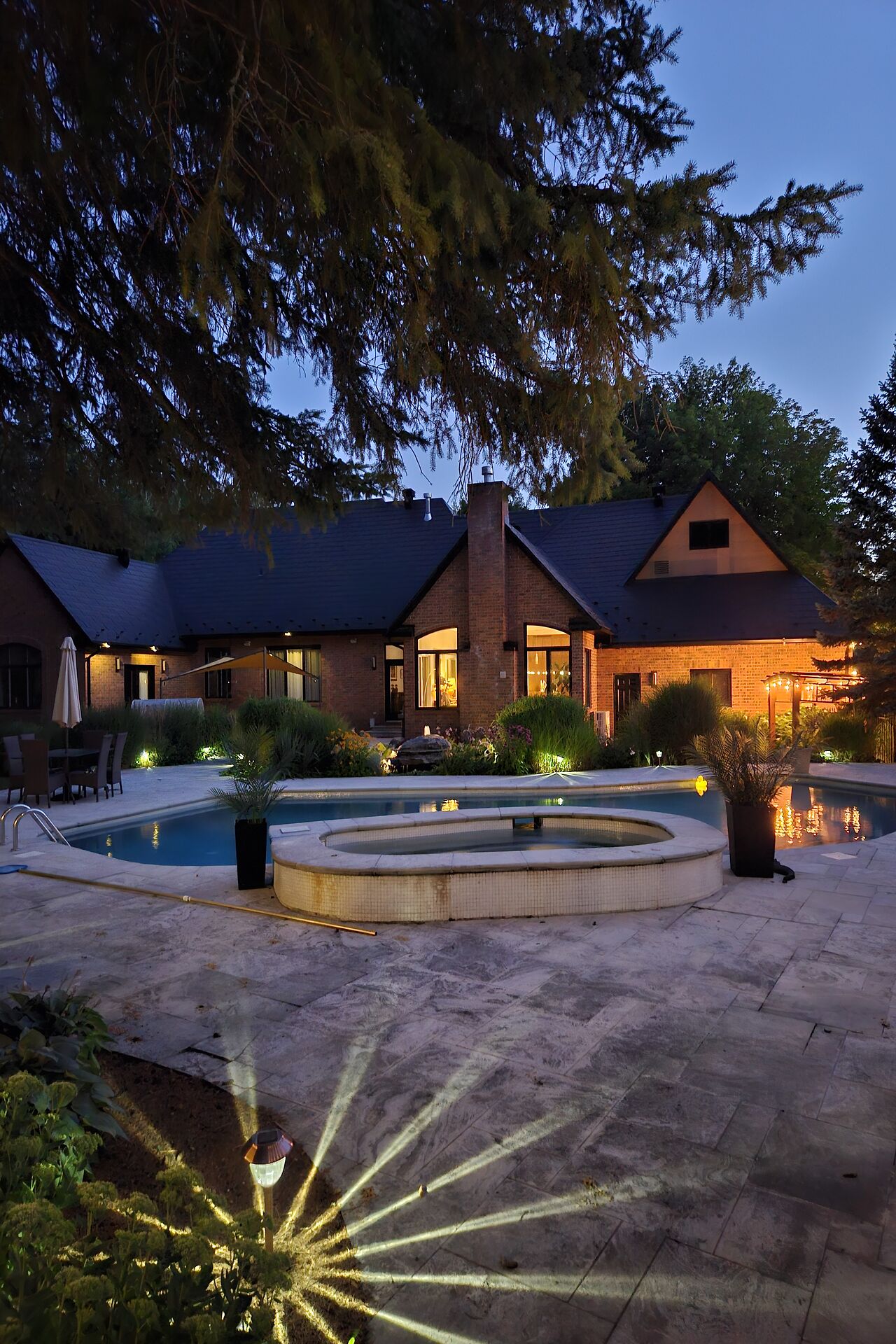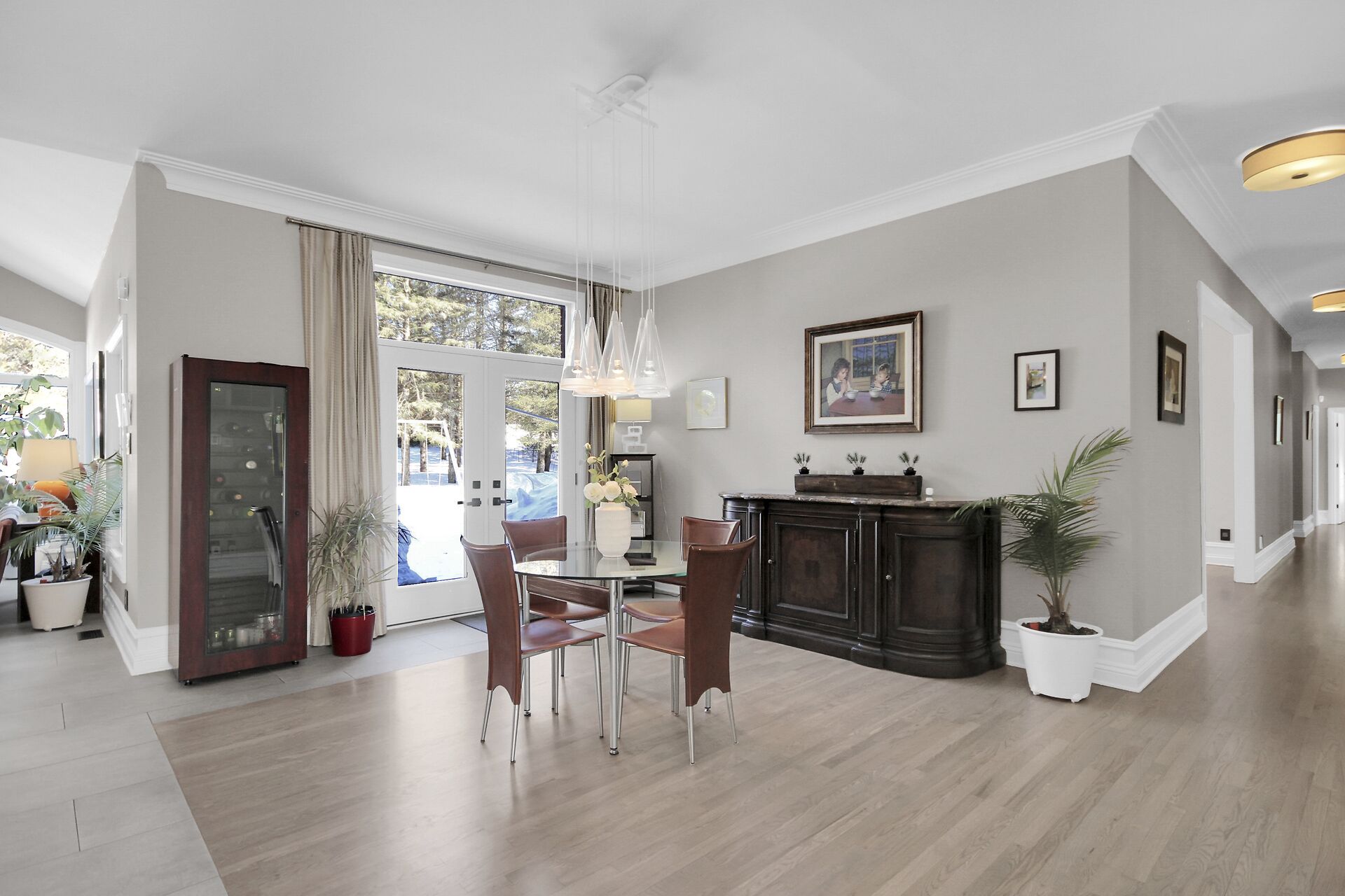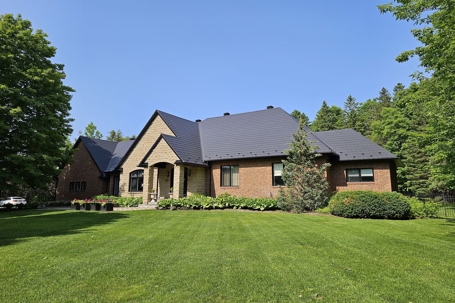 Discover the essence of opulent Bungalow living in Manotick. Nestled in luxurious Rideau Forest on a 2.07 acre, treed lot, this sought-after enclave is a modern masterpiece, where luxury meets tranquility. The allure begins with a harmonious blend of serene surroundings and urban accessibility. Step into your private oasis, a rear yard beyond imagination. Lush landscaping envelops a pristine pool & spa and a sophisticated guest house, creating an atmosphere of pure relaxation for entertaining. The architectural marvel of peaked metal rooflines embody quality & sophistication. Meticulous design details, expansive windows, 10 ft. ceilings create spaces flooded with light. 5 Bdrms 7 Baths, 3 gas fireplaces. 6094 sq. ft