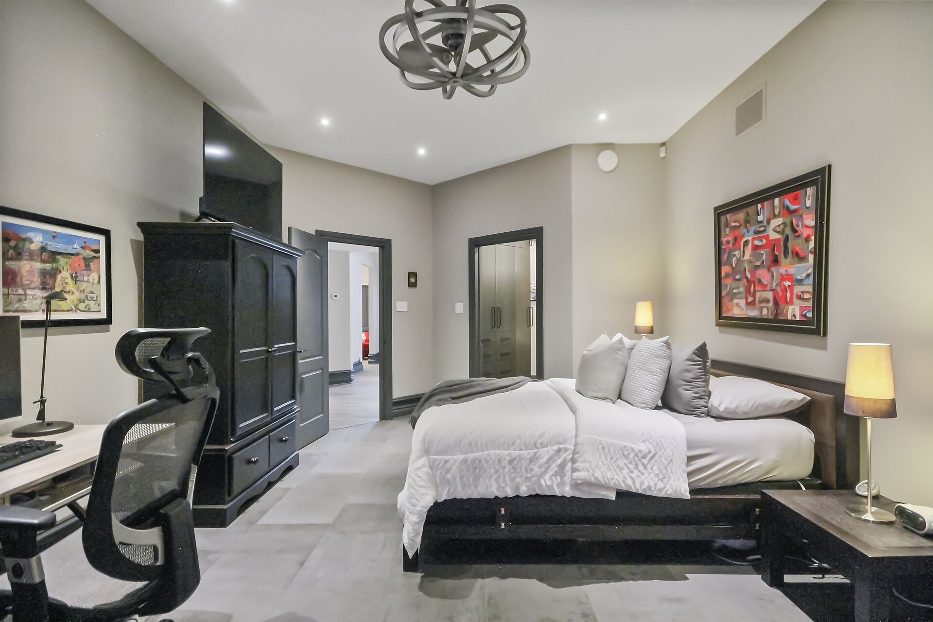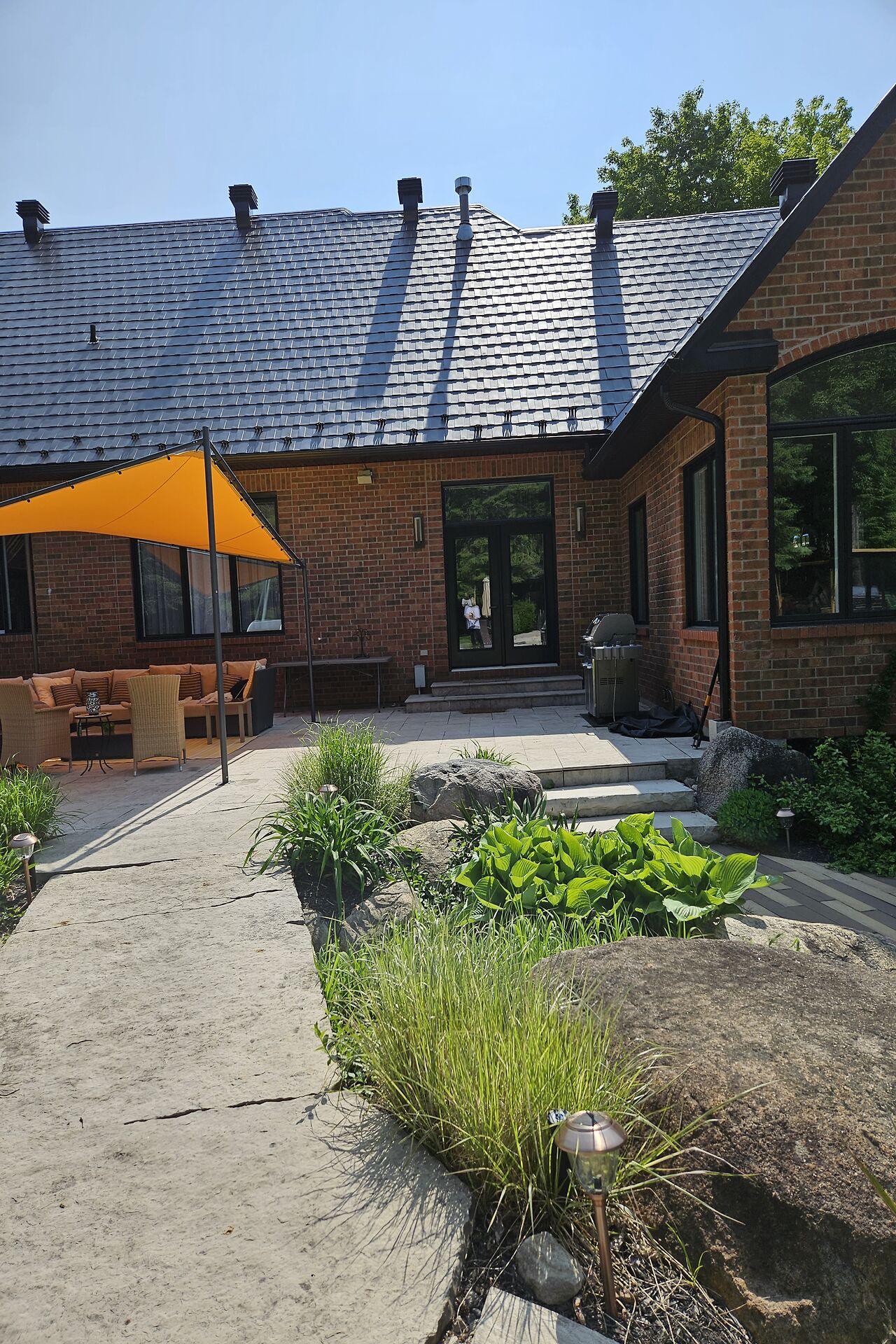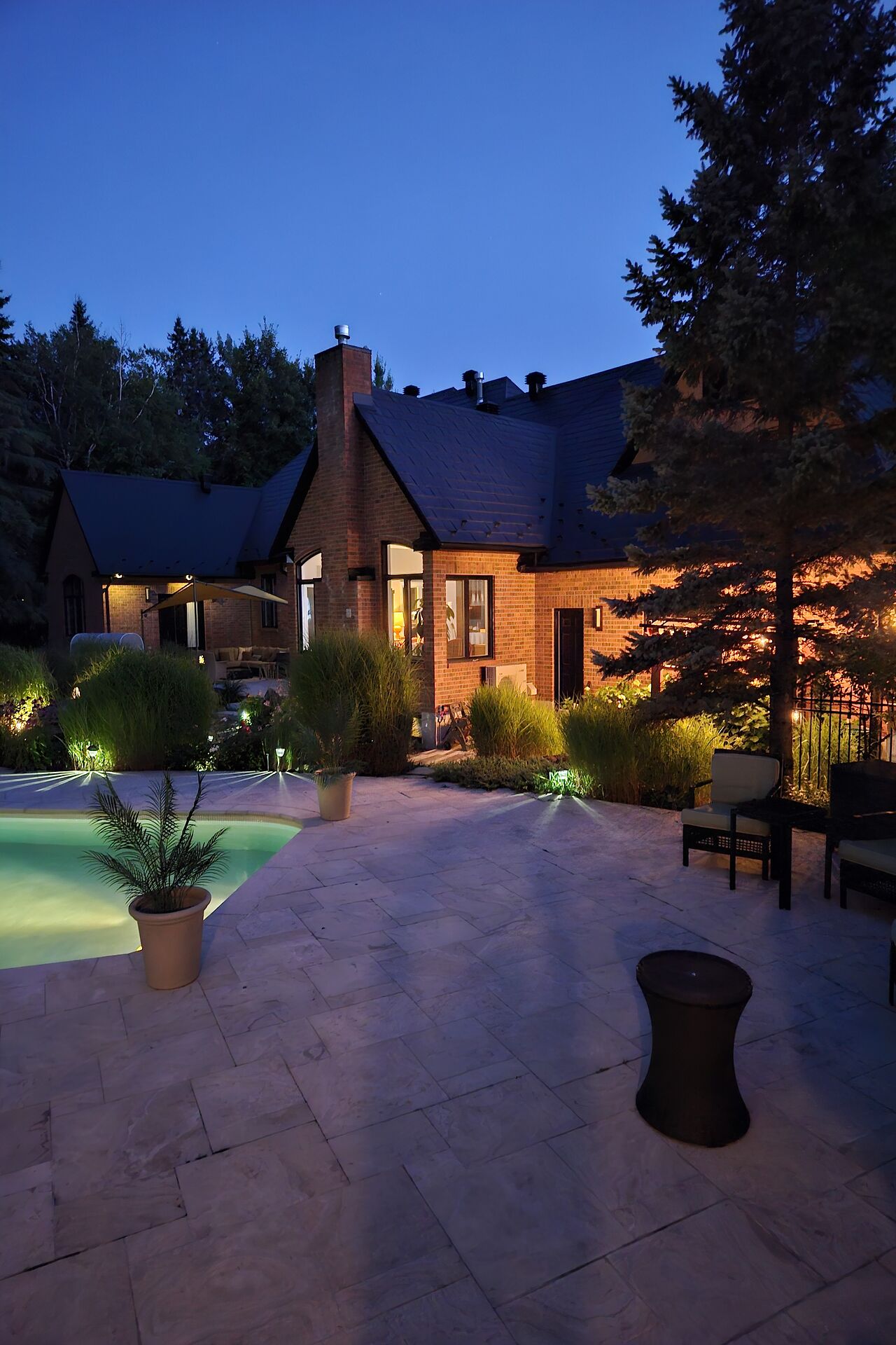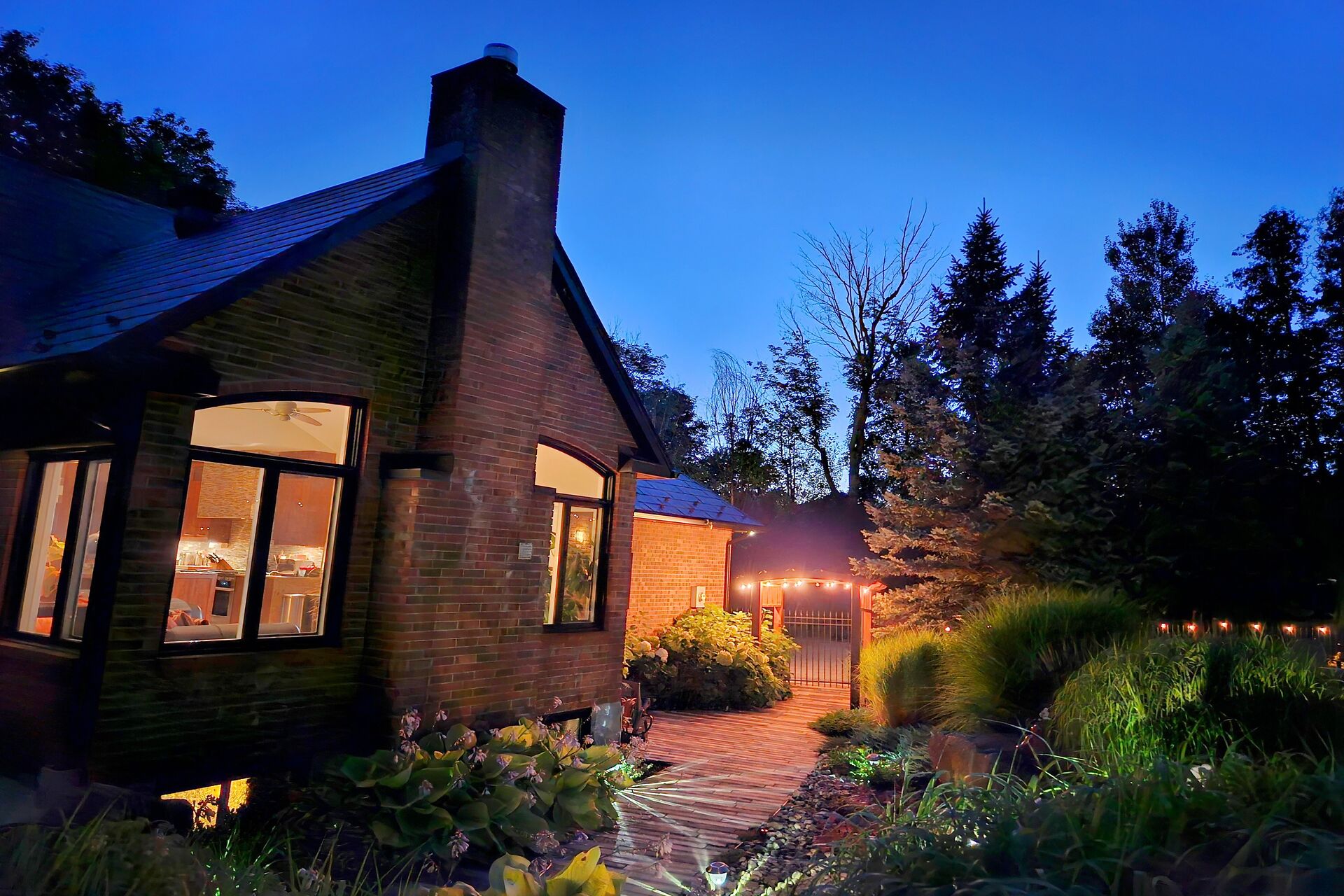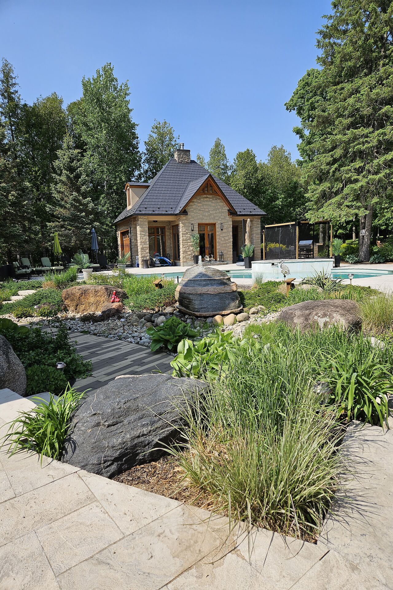 Discover the essence of opulent Bungalow living in Manotick. Nestled in luxurious Rideau Forest on a 2.07 acre, treed lot, this sought-after enclave is a modern masterpiece, where luxury meets tranquility. The allure begins with a harmonious blend of serene surroundings and urban accessibility. Step into your private oasis, a rear yard beyond imagination. Lush landscaping envelops a pristine pool & spa and a sophisticated guest house, creating an atmosphere of pure relaxation for entertaining. The architectural marvel of peaked metal rooflines embody quality & sophistication. Meticulous design details, expansive windows, 10 ft. ceilings create spaces flooded with light. 5 Bdrms 7 Baths, 3 gas fireplaces. 6094 sq. ft