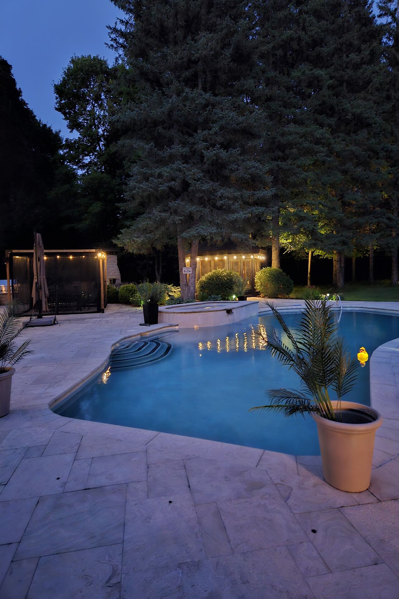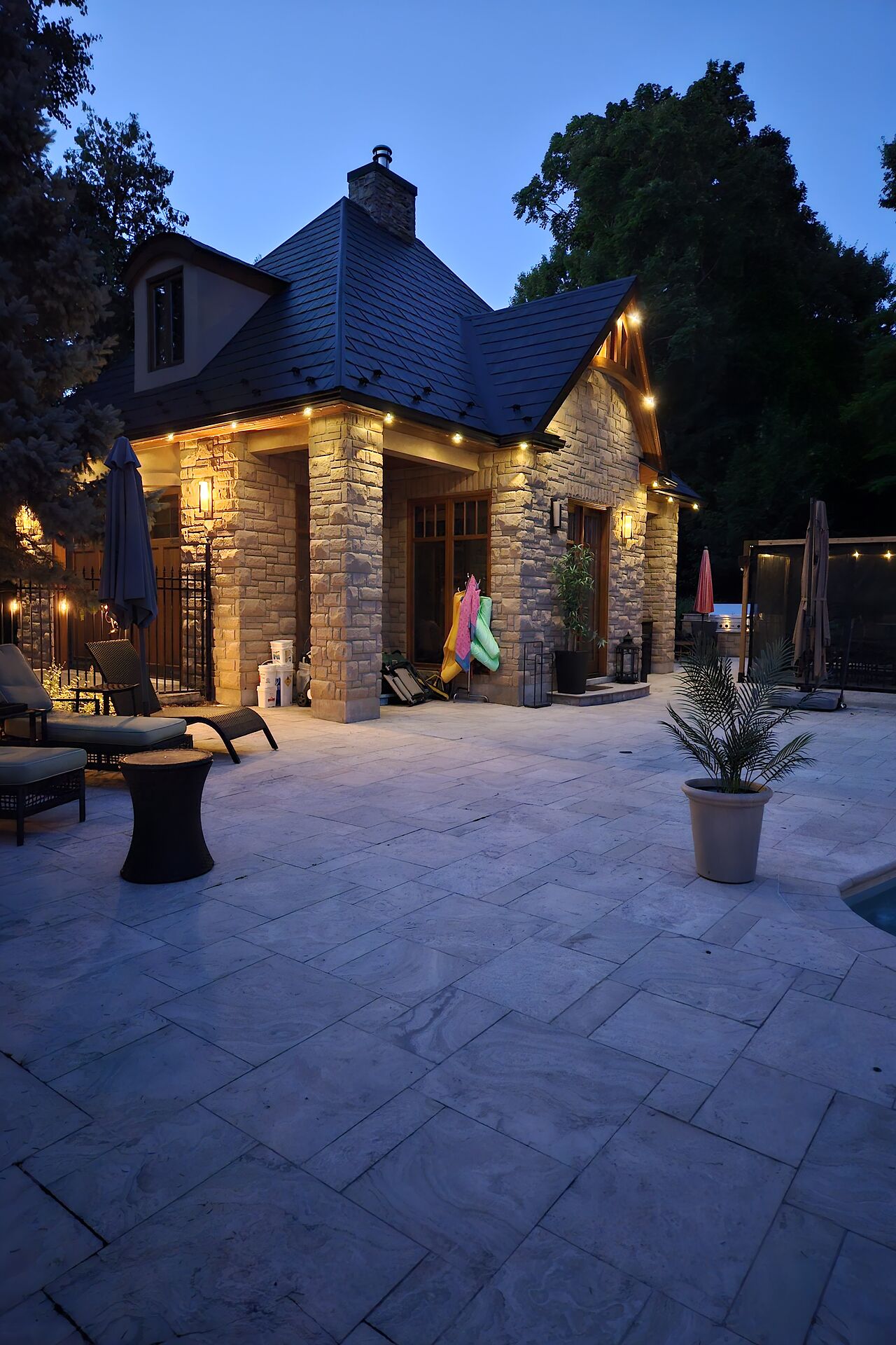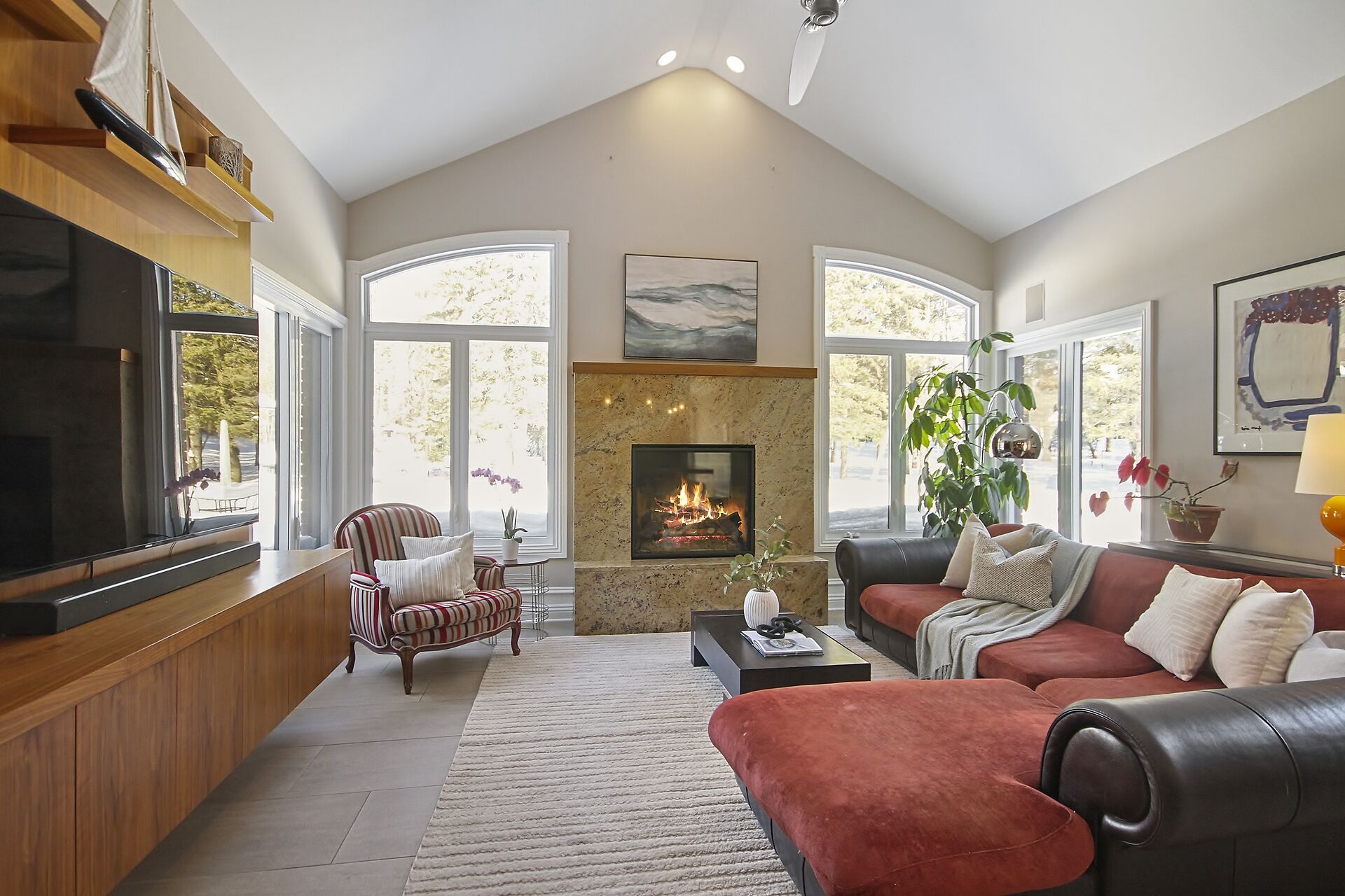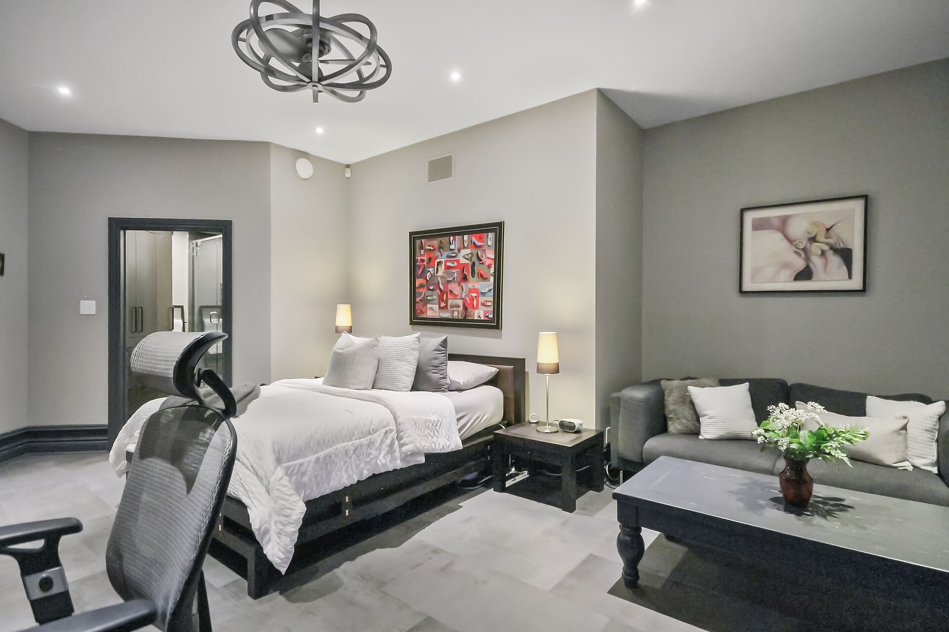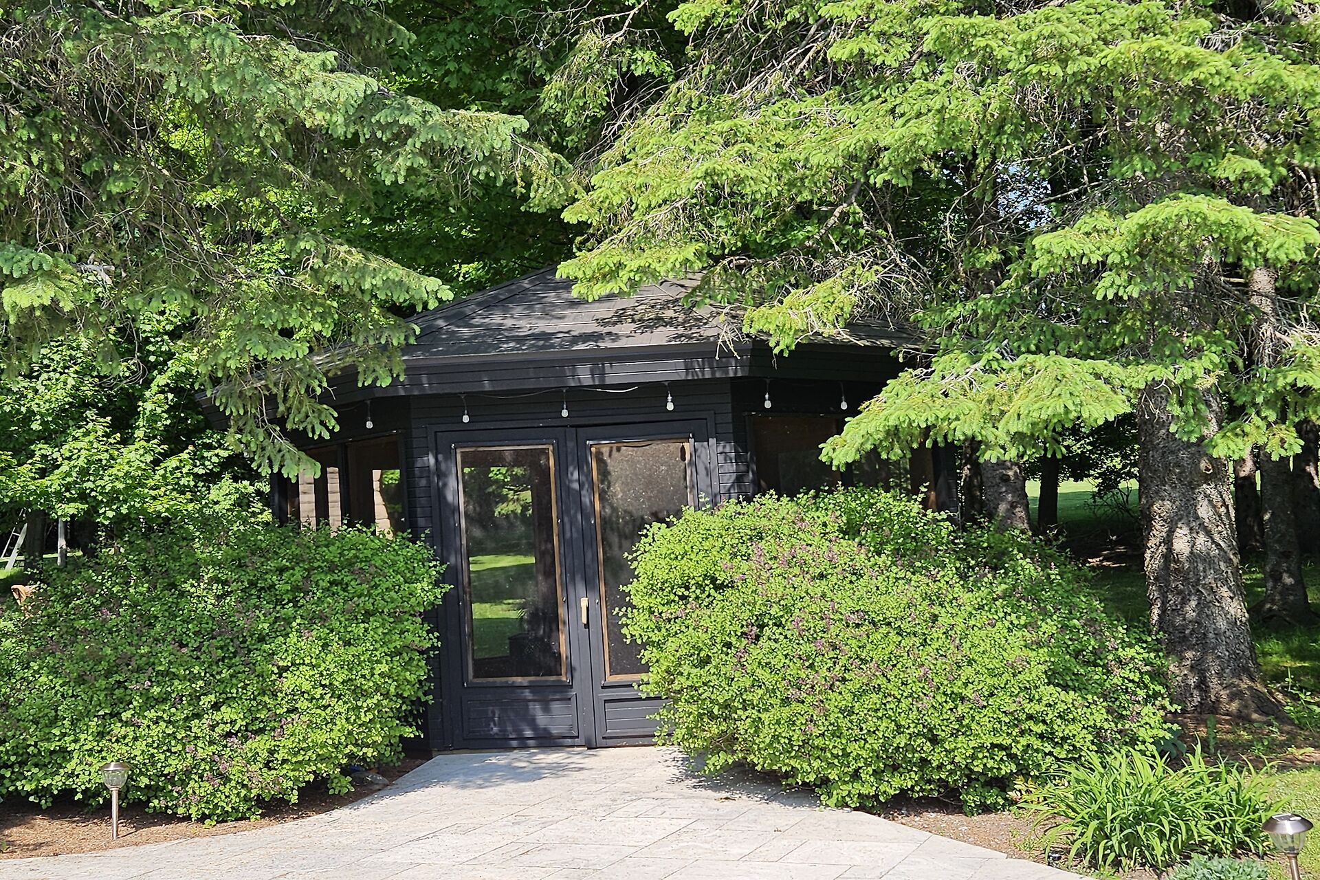 Discover the essence of opulent Bungalow living in Manotick. Nestled in luxurious Rideau Forest on a 2.07 acre, treed lot, this sought-after enclave is a modern masterpiece, where luxury meets tranquility. The allure begins with a harmonious blend of serene surroundings and urban accessibility. Step into your private oasis, a rear yard beyond imagination. Lush landscaping envelops a pristine pool & spa and a sophisticated guest house, creating an atmosphere of pure relaxation for entertaining. The architectural marvel of peaked metal rooflines embody quality & sophistication. Meticulous design details, expansive windows, 10 ft. ceilings create spaces flooded with light. 5 Bdrms 7 Baths, 3 gas fireplaces. 6094 sq. ft